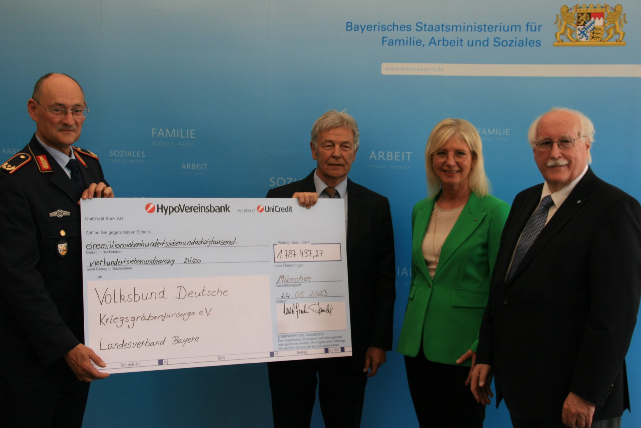 Dank der großzügigen Spenden aus der Bevölkerung konnten bei der Haus-, Straßen- und Friedhofssammlung 2022 des Volksbundes Deutsche Kriegsgräberfürsorge e.V. in Bayern ein bundesweites Spitzenergebnis von 1,787 Millionen Euro erzielt werden.