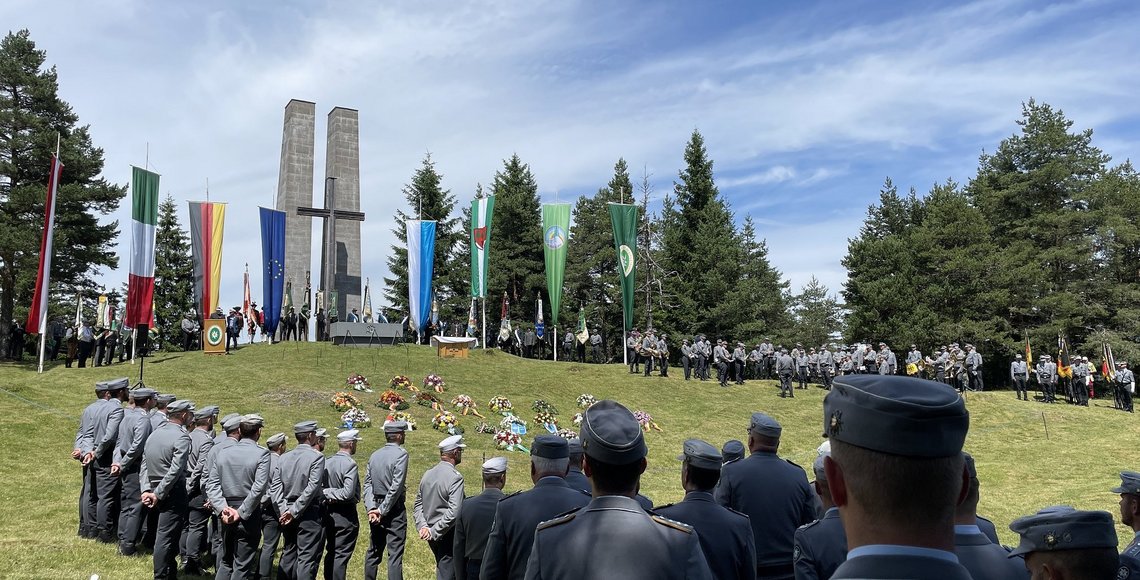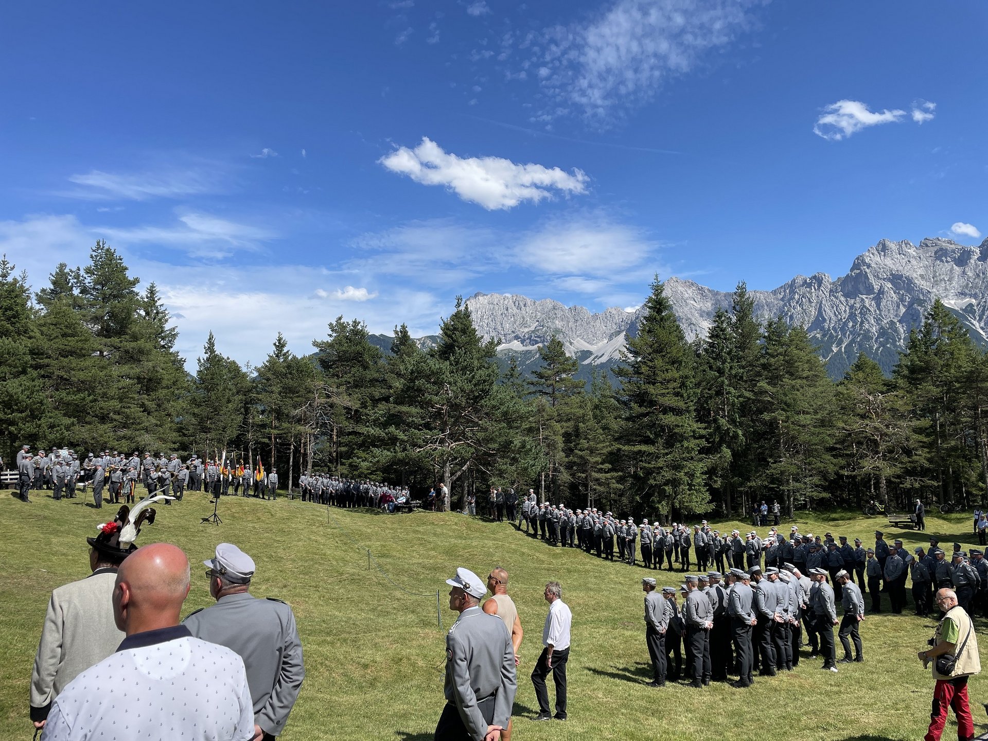 Der Präsident des Kameradenkreises der Gebirgstruppe, Oberst a.D. Hans Sahm, begrüßte die Teilnehmer, unter ihnen auch Abordnungen der Internationalen Föderation der Gebirgssoldaten (I.F.M.S.).